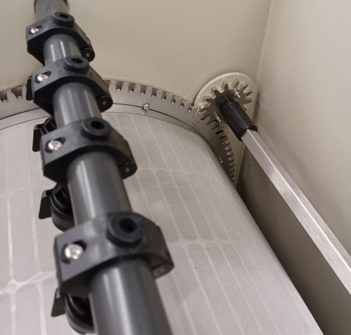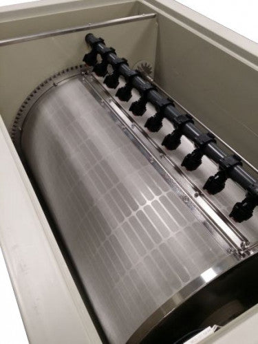 - This drum filter is fitted with a cover switch, which cuts power to the drum motor and UVs when the lid is lifted off.